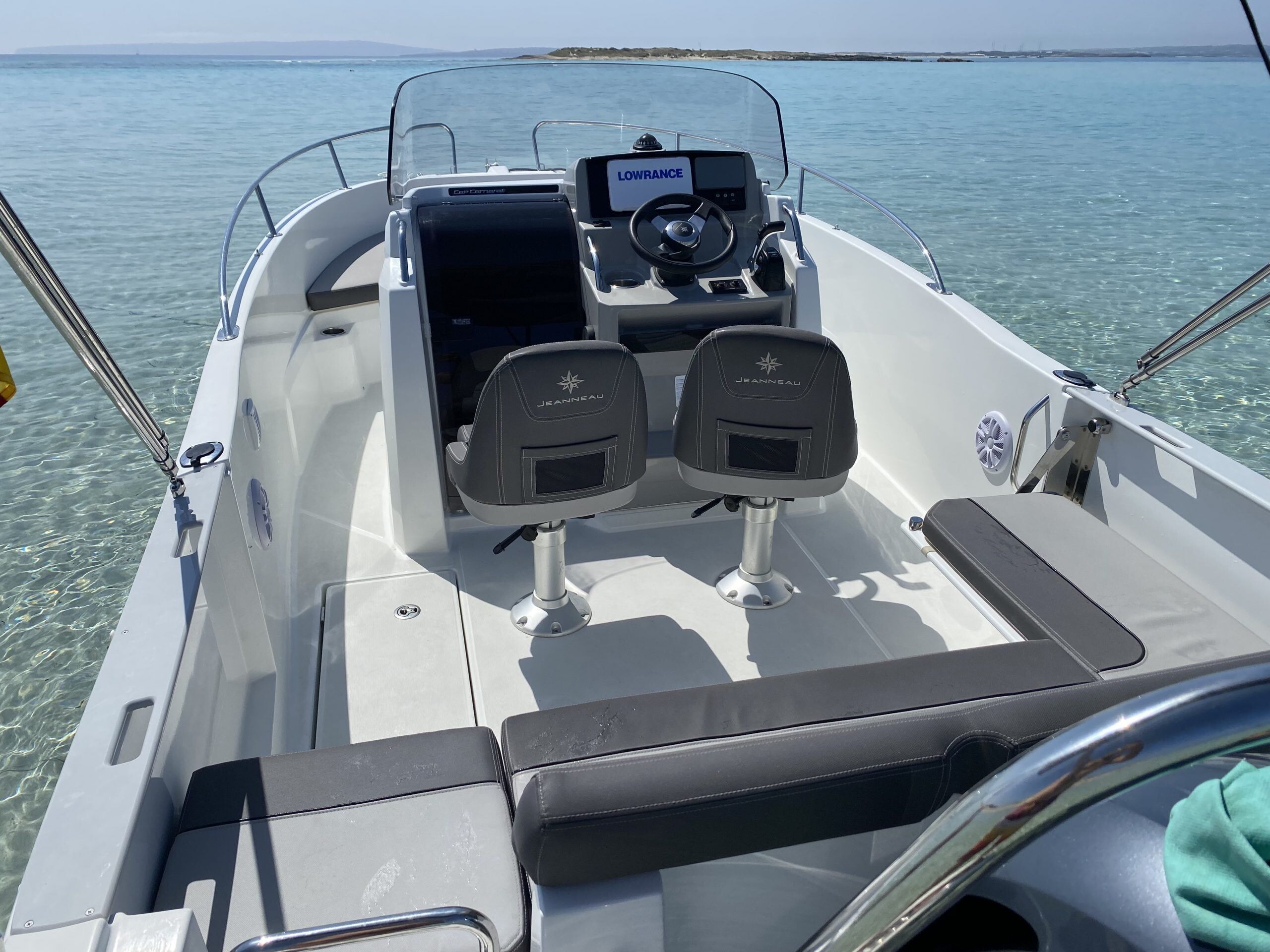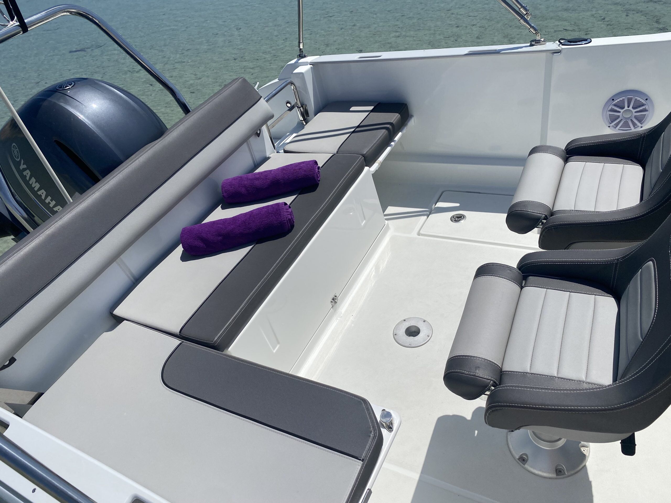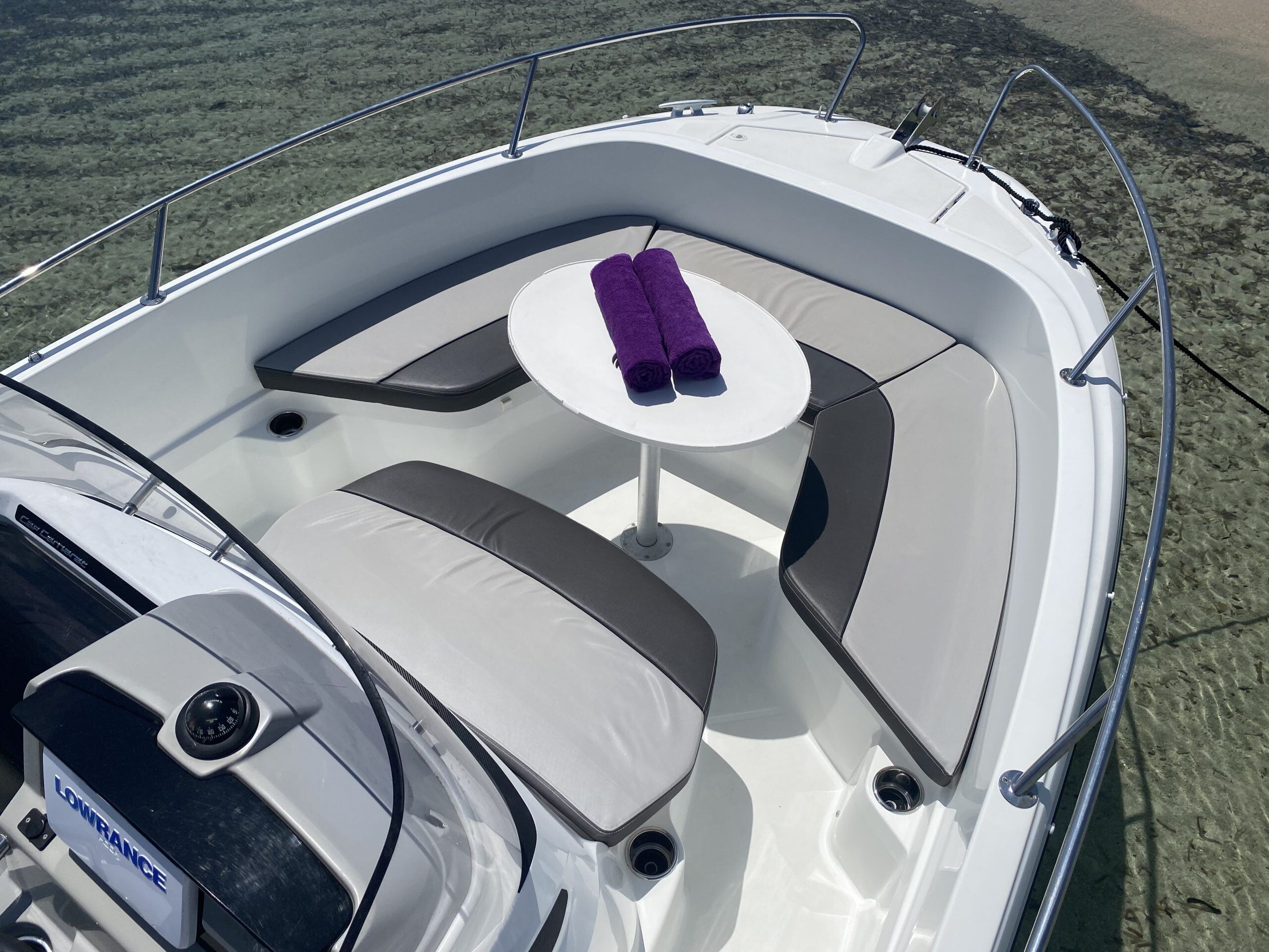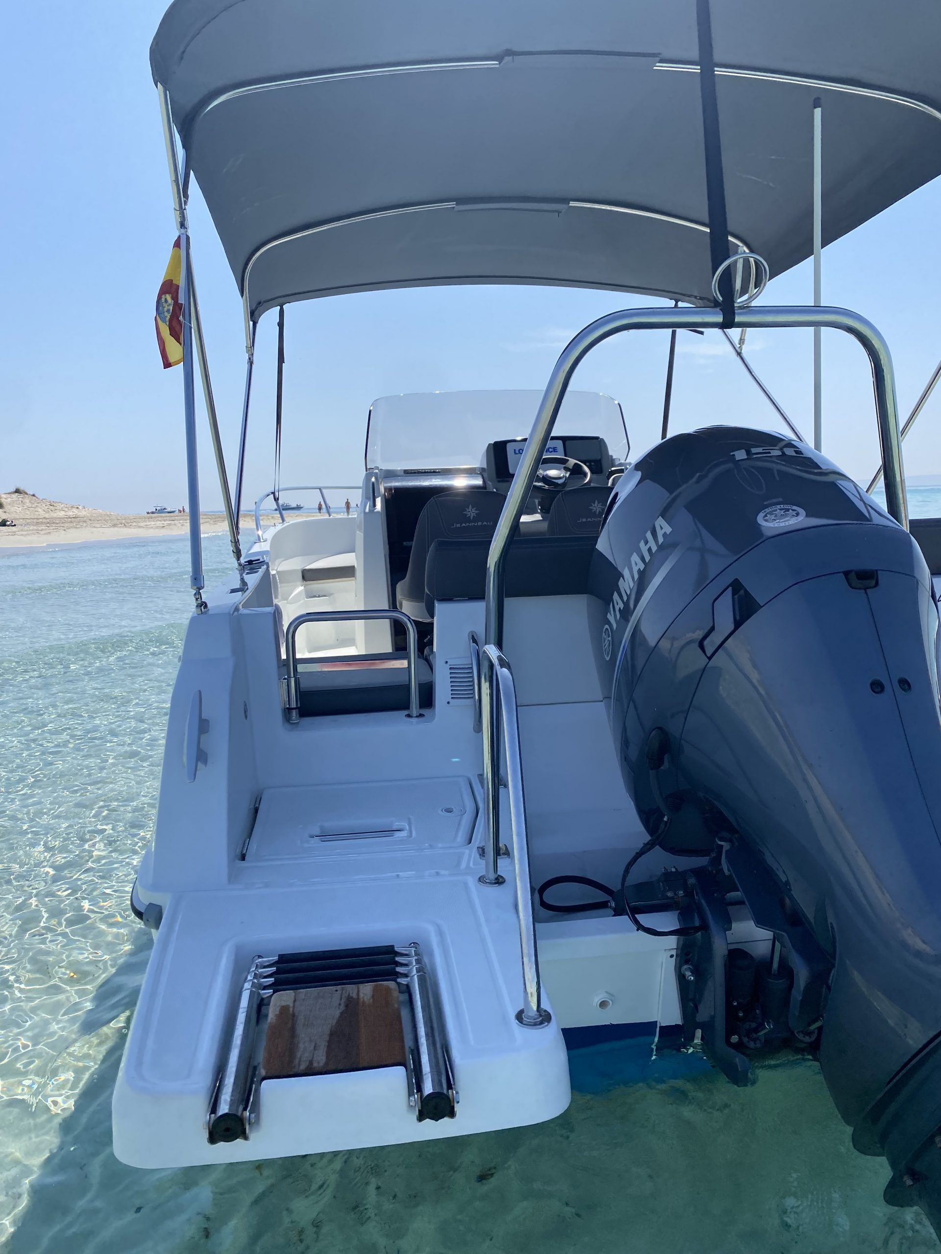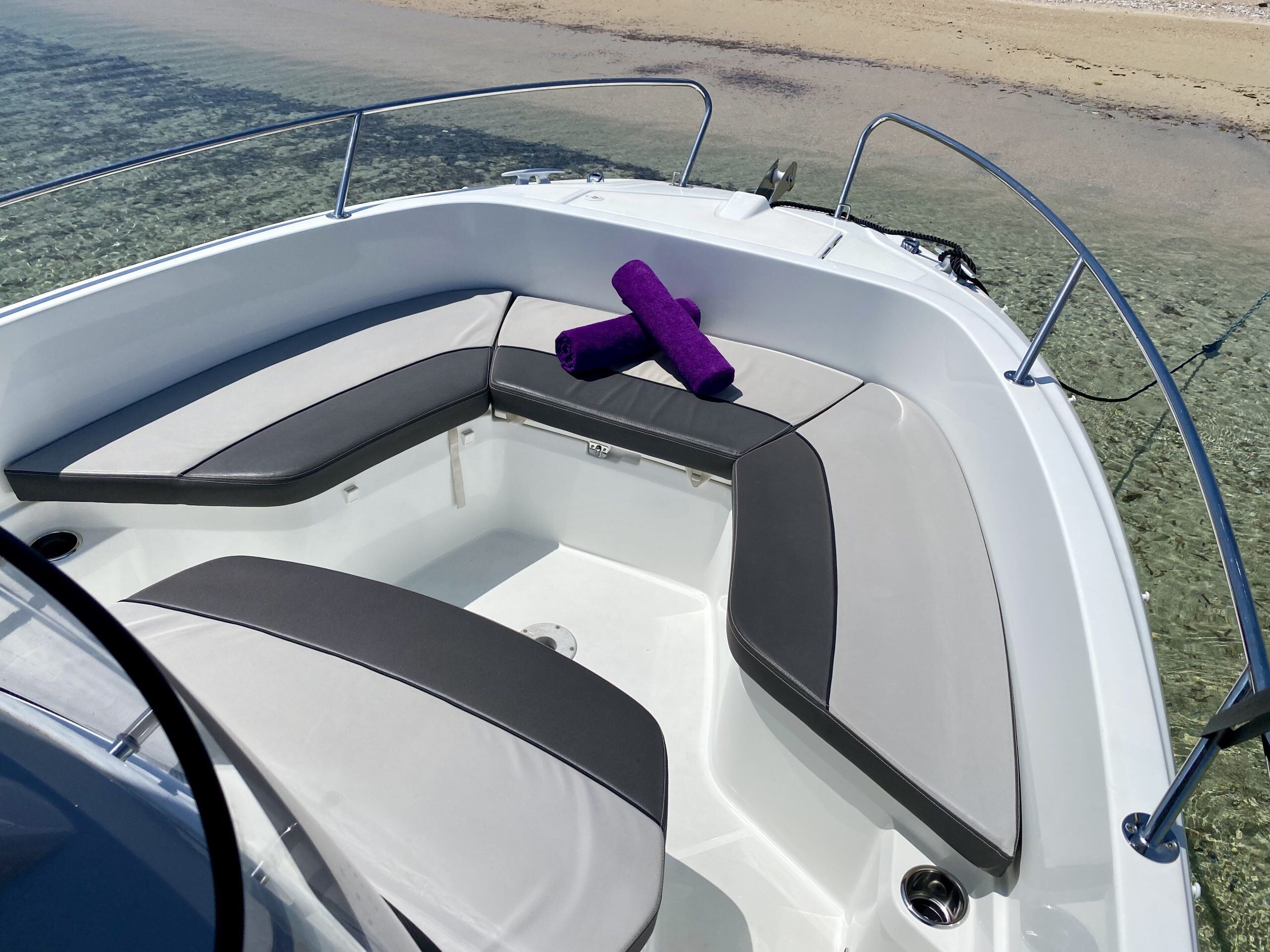 Este barco cuenta con una amplia bañera que ofrece mucho espacio para relajarse y disfrutar del sol, así como con un solárium en proa donde podrás tomar el sol cómodamente. Además, su motor fueraborda te permitirá alcanzar una velocidad de hasta 35 nudos, lo que lo convierte en una opción perfecta para los amantes de la velocidad y la adrenalina.