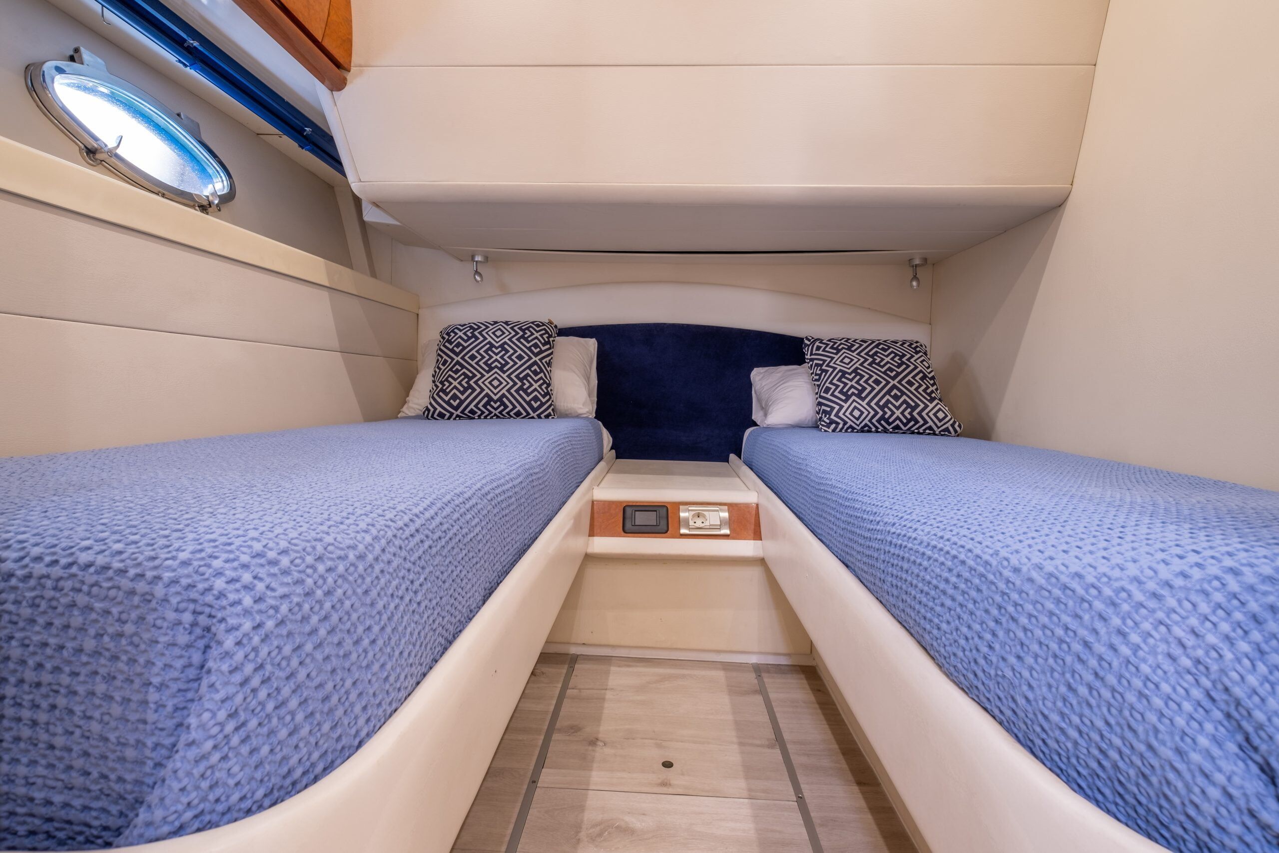Alquilar esta Pershing en Ibiza es una experiencia de lujo incomparable. Este yate de alta gama cuenta con un diseño elegante y moderno, así como con un interior lujoso y espacioso que puede alojar hasta 11 personas en 2 cabinas dobles con baño privado. Equipado con motores potentes, este yate puede alcanzar velocidades impresionantes y garantiza una navegación suave y cómoda. Además, cuenta con una amplia variedad de comodidades a bordo, como aire acondicionado, TV de pantalla plana, sistema de sonido de alta calidad y una cocina totalmente equipada. Podrás disfrutar de una experiencia inolvidable en alta mar y explorar las aguas cristalinas y las impresionantes playas de la isla con total comodidad y estilo.