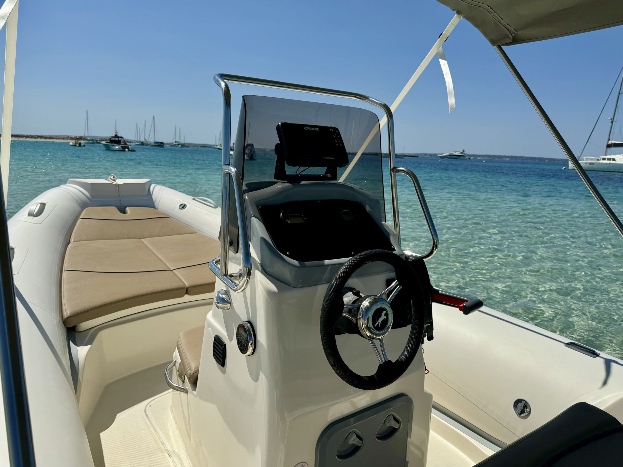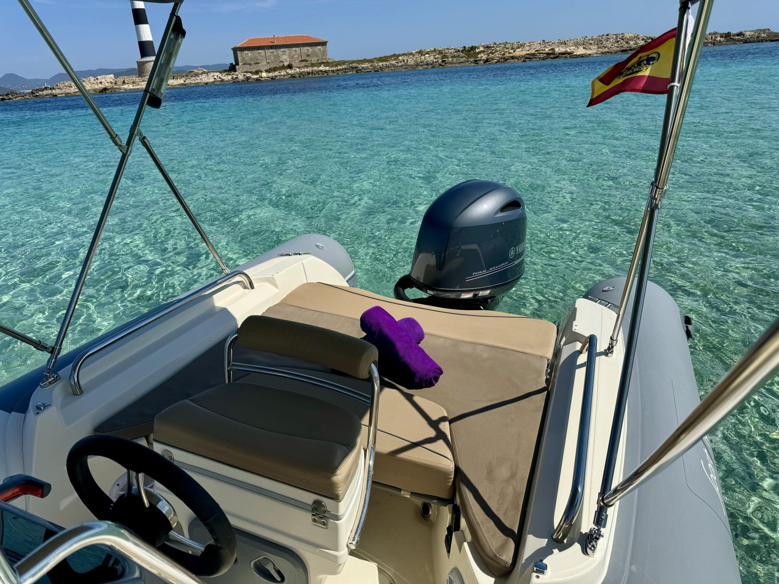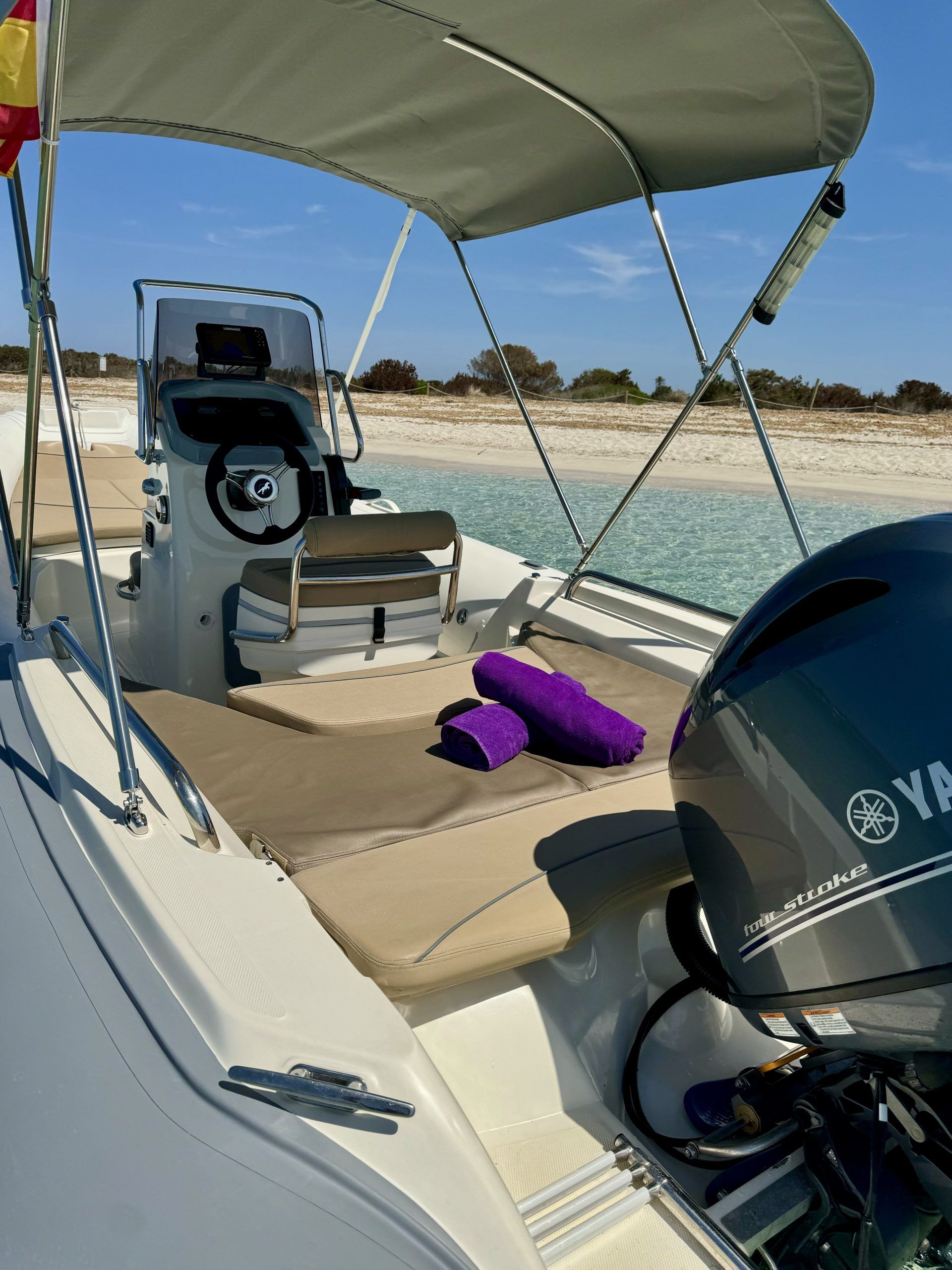 Alquila este barco desde el puerto de Ibiza donde ir a las mejores calas de Formentera como cala Saona , es calo, isla de espalmador y mucho más, capacidad para 9 personas más patrón,