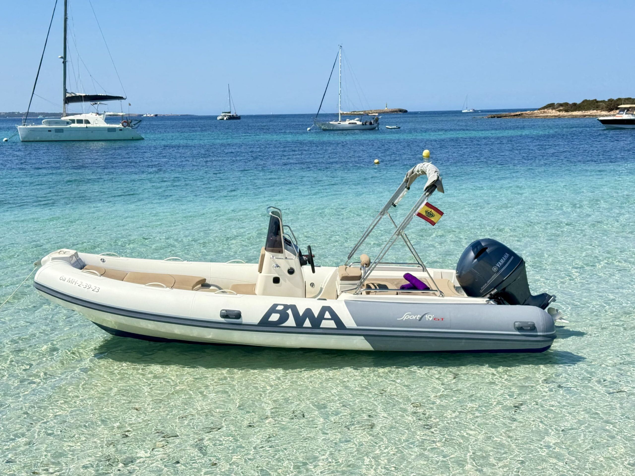 Si estás buscando una experiencia de navegación única y emocionante en Ibiza, alquila este barco sin patrón en Ibiza BWA 19 GT es una excelente opción para ti. Este impresionante barco tiene una capacidad de hasta 10 personas, lo que lo convierte en la elección perfecta para grupos grandes de amigos o familiares que buscan explorar las hermosas aguas de Ibiza y Formentera.