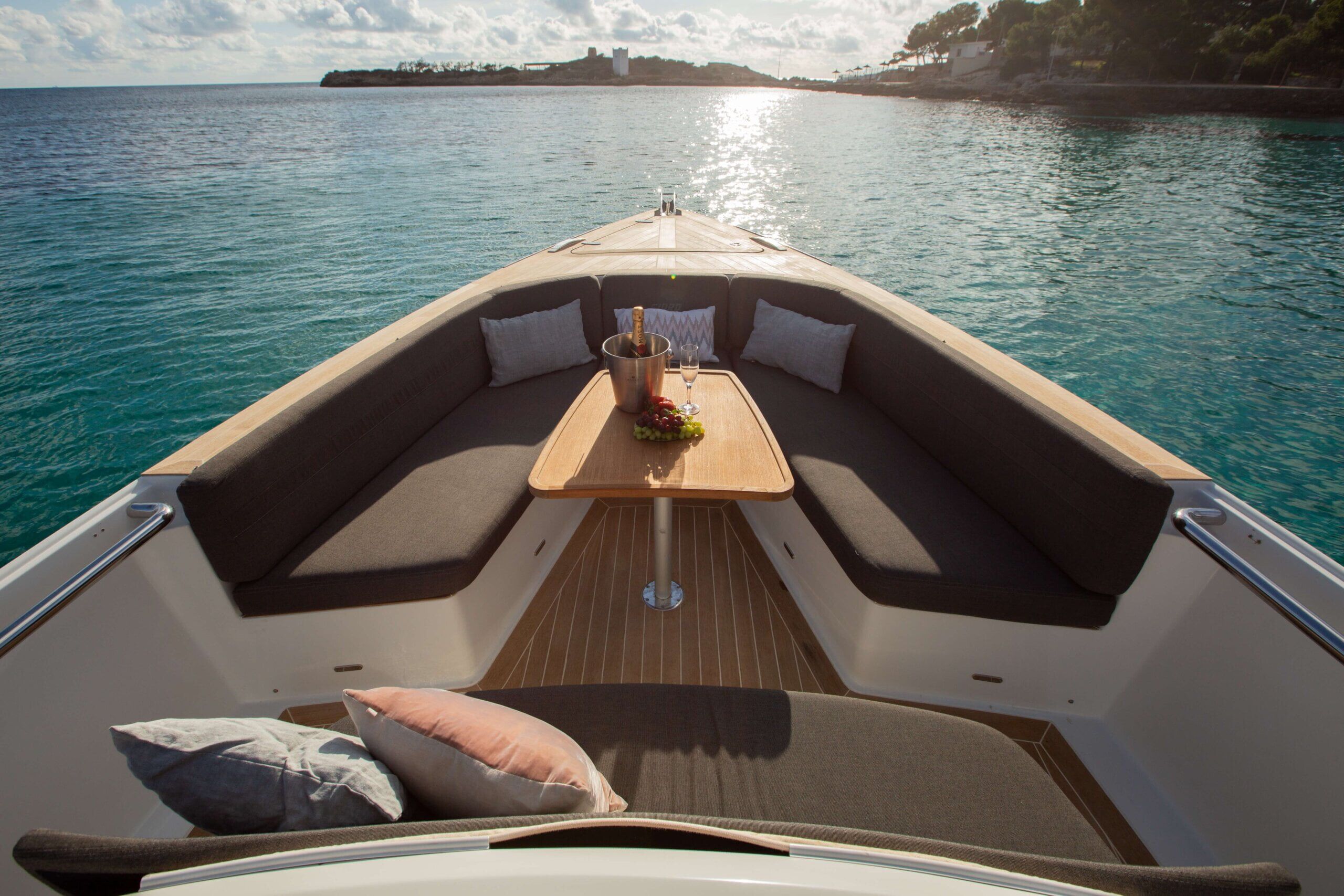 En la cubierta, el Fjord 36 dispone de una amplia zona de solárium en la proa, así como de un cómodo sofá en la popa que permite disfrutar de la navegación en un ambiente relajado. Además, su plataforma de baño en popa facilita el acceso al mar para darse un refrescante chapuzón. En resumen, el Fjord 36 es un barco deportivo muy versátil y con una gran personalidad que hará las delicias de los amantes de la navegación.