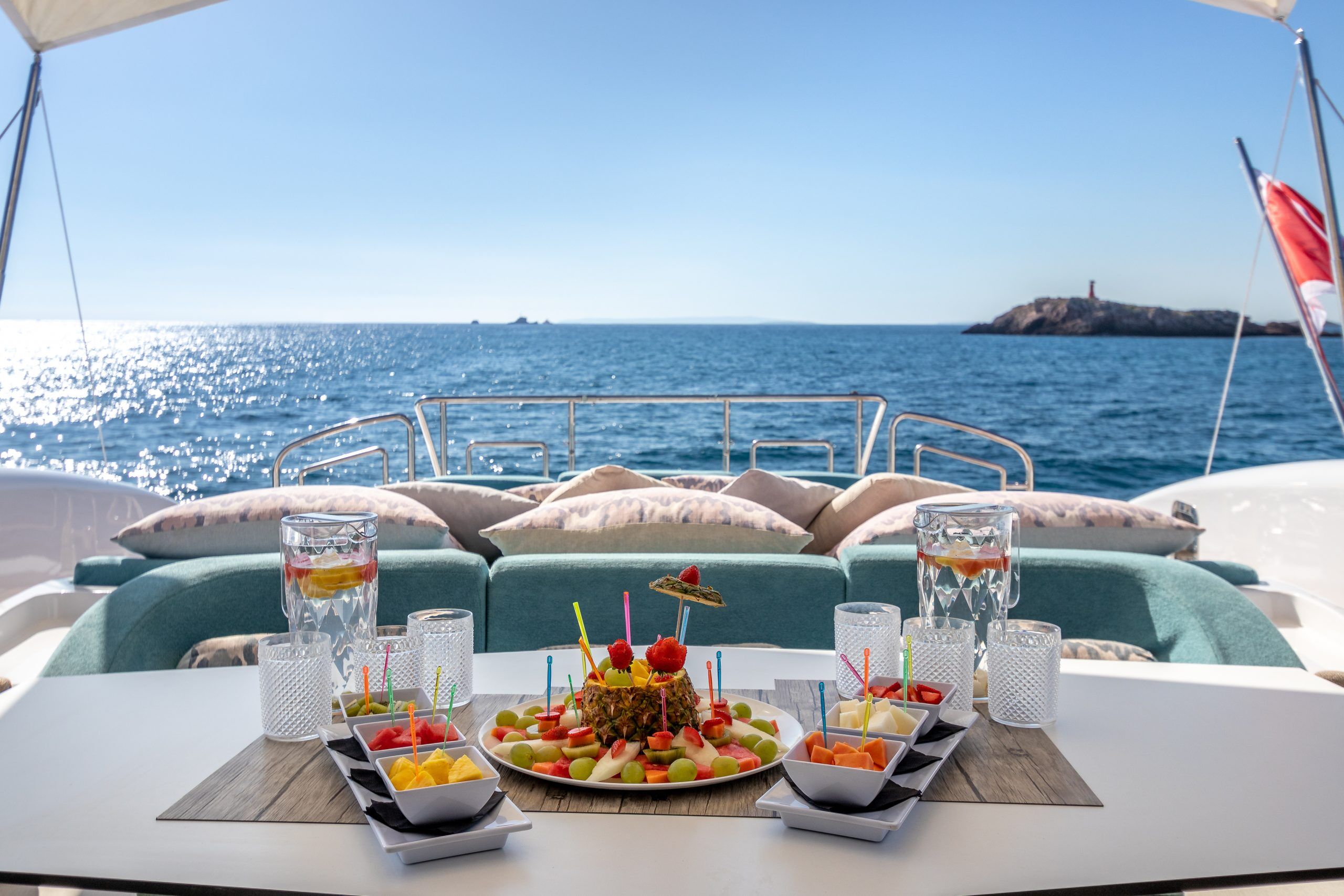 Con nuestros yates podrás hacer una navegación más segura y placentera, con esloras de 15 a 20 metros las olas no se sienten igual, podrás relajarte camino a Formentera en el solárium disfrutando de un refresco, la ruta a Fomentara es de 30 min dependiendo el estado del mar, pero también puedes optar por visitar la isla de es Vedrá al oeste de la isla de Ibiza.