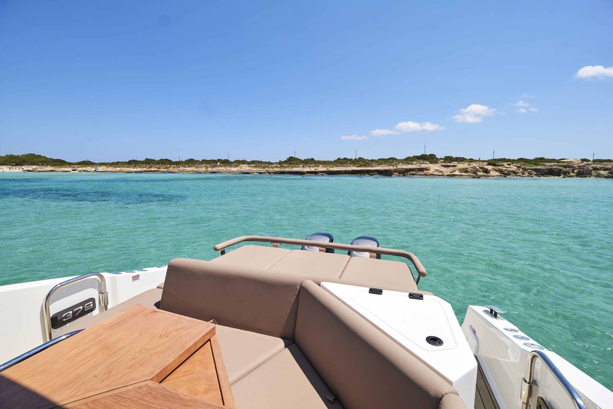 Alquila este barco desde el puerto de Ibiza donde ir a las mejores calas de Formentera como cala Saona , es calo, isla de espalmador y mucho más, capacidad para 11 personas más patrón,
