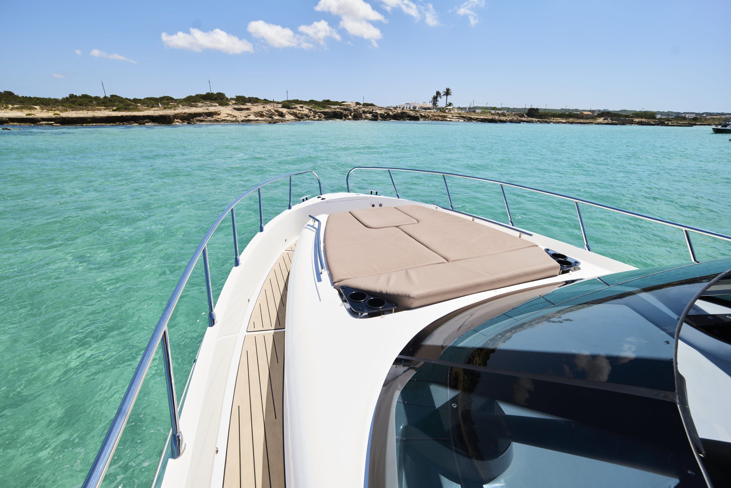 El barco tiene una capacidad para hasta 11 pasajeros y es perfecto para navegar por las aguas de Ibiza y Formentera. Cuenta con una cabina principal con una cómoda sala de estar, un comedor y una cocina totalmente equipada. También tiene un amplio solárium en la proa y una zona de relax en la popa, ideal para tomar el sol o disfrutar de una bebida mientras se contempla el mar.