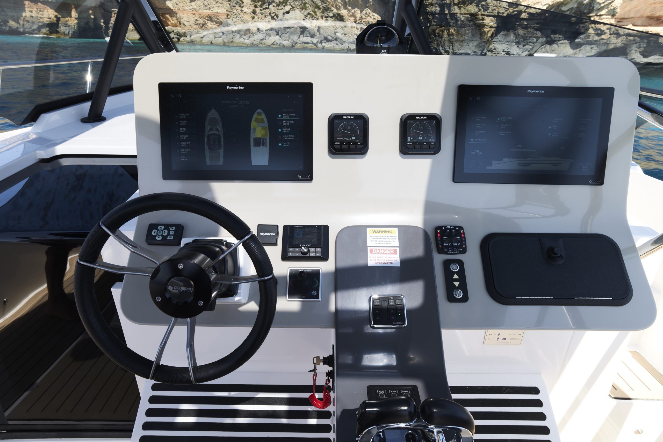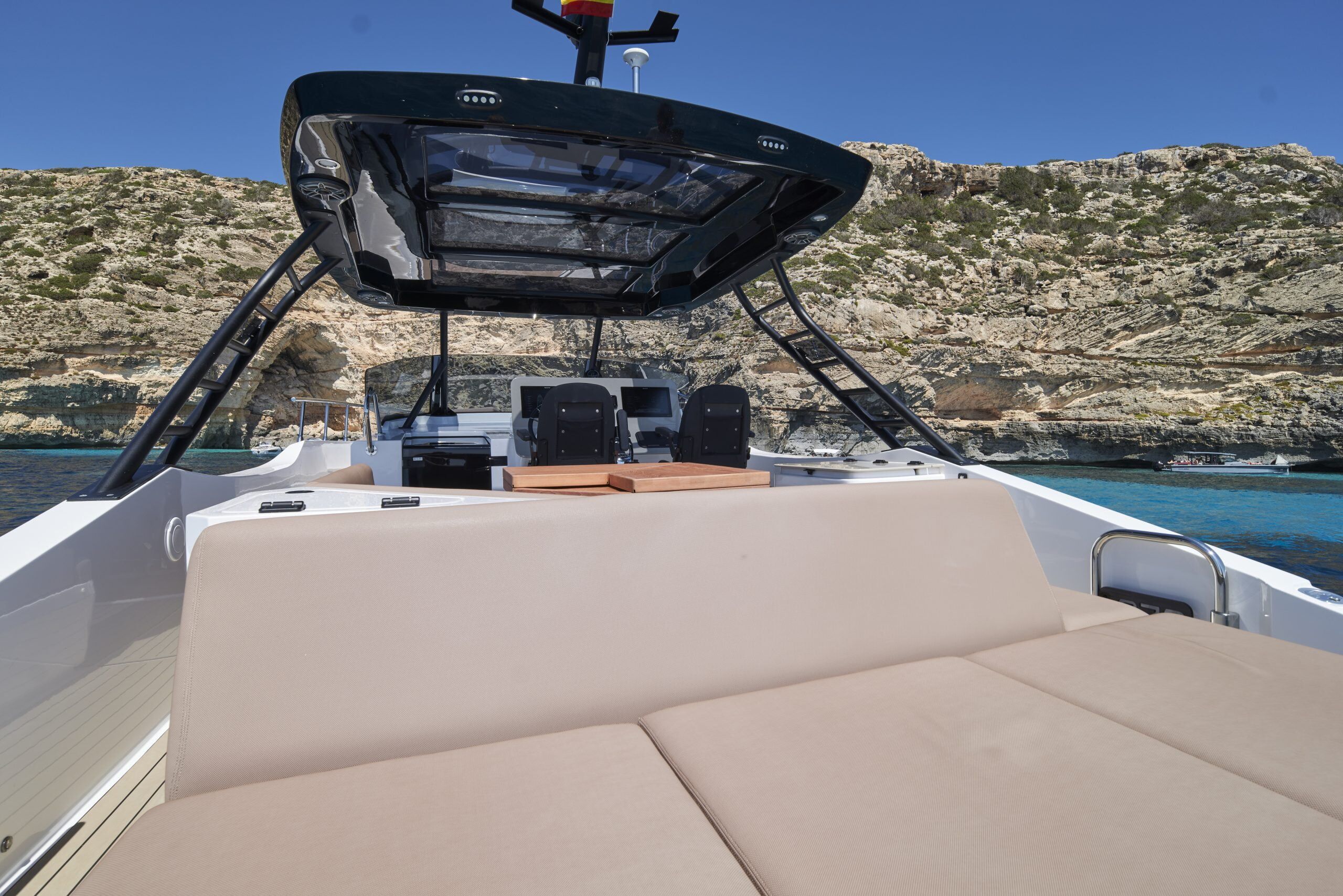 El Oryx 38 es un elegante y lujoso barco de motor que ofrece un alto rendimiento y una experiencia de navegación emocionante. Con una longitud de 11,7 metros, cuenta con un diseño aerodinámico y moderno que combina la comodidad y la funcionalidad en un solo paquete.