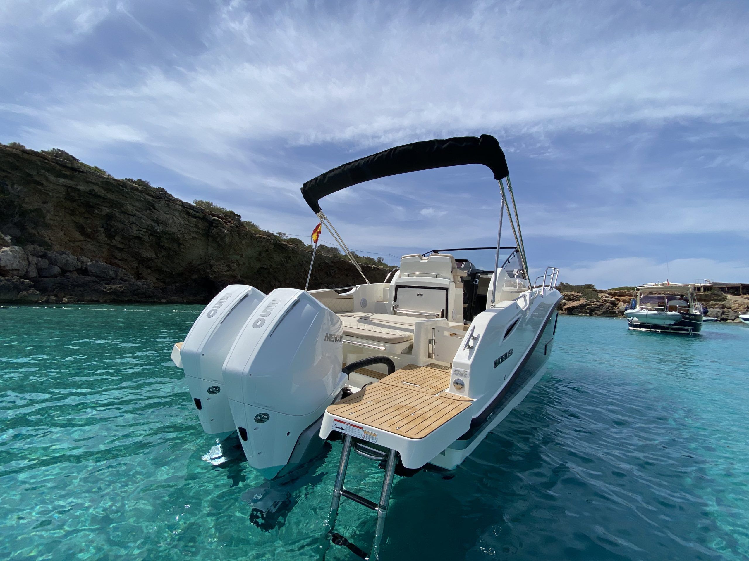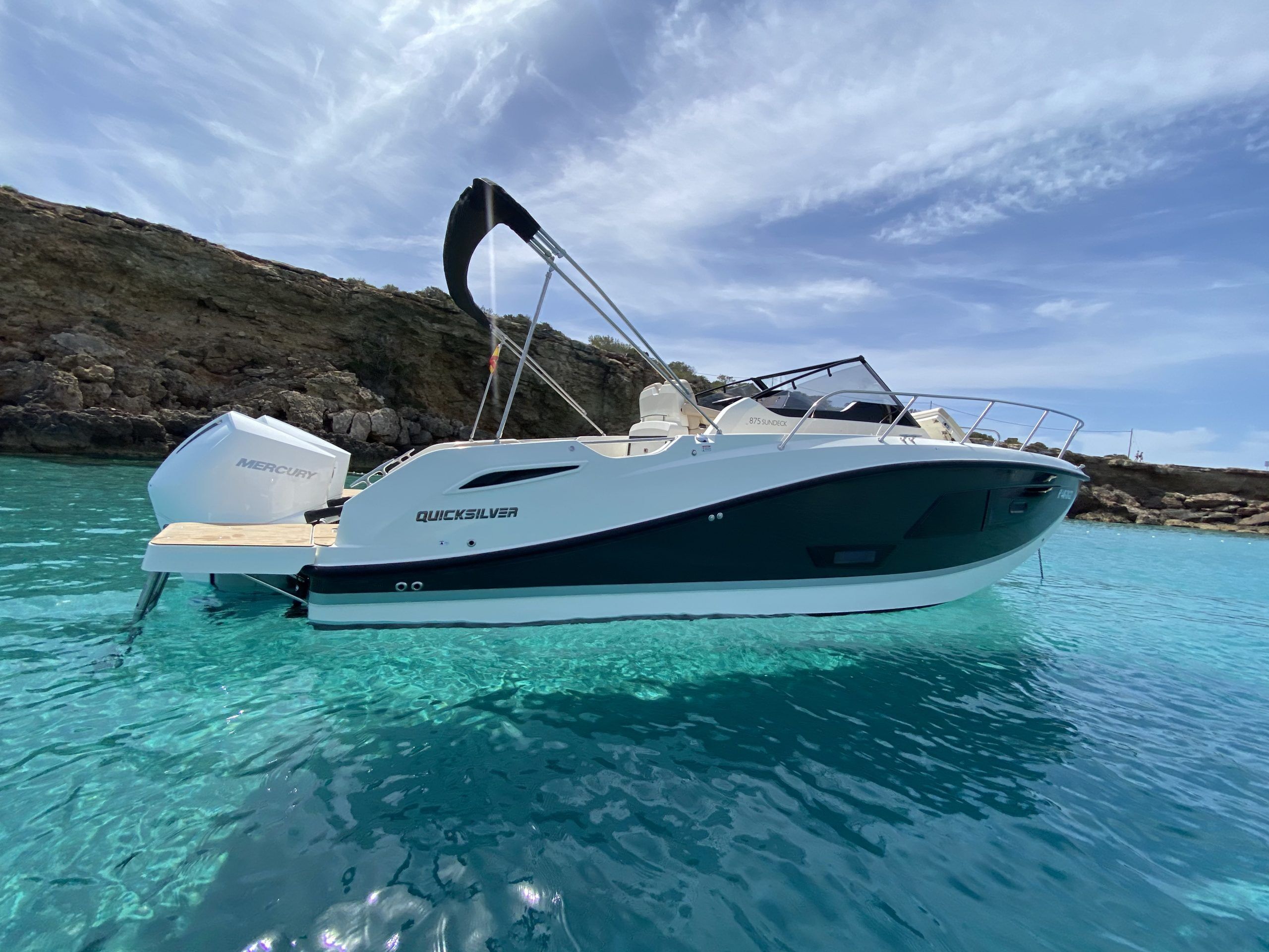 Si estás buscando un alquiler de barco en Ibiza para una escapada emocionante y cómoda en el mar, el Quicksilver 875 es una excelente opción para ti.